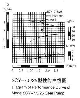 各型2CY齒輪泵的性能參數(shù),是在介質(zhì)粘度4×10-3m2/s(40cSt)時(shí)確定的。性能參數(shù)表中給出的參數(shù)值適用于介質(zhì)粘度1×10-5~8×10-5m2/s(10~80cSt)范圍內(nèi),超出這個(gè)范圍則根據(jù)用戶提出的性能參數(shù)要求另行確定。