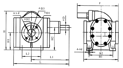 | 型號(hào) | L | L1 | L2 | B1 | B2 | B3 | H | H1 | H2 | φ1 | φ2 | φ3 | n-d | φD | 4-φd |