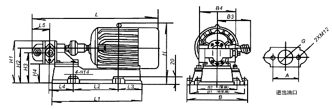 | 型號(hào) | L | L1 | L2 | L3 | L4 | B | B1 | B2 | B3 | H | H1 | H2 | φD | G | 4-φd |