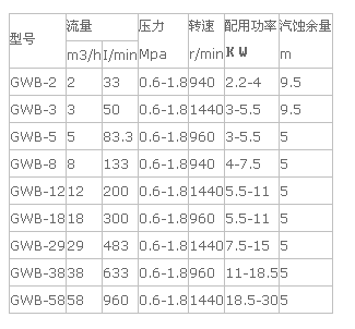 GWB煤焦油泵,外潤滑重油泵,GWB渣油泵性能參數(shù)與配套電機